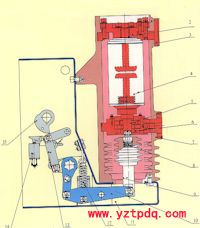 高壓真空斷路器的實際結構中,觸頭合閘彈簧設計成即使處于分閘位置,也有相當的預壓縮量,有預壓力。這是為使合閘過程中,當動觸頭尚未碰到靜觸頭而發生預擊穿時,動觸頭有相當力量抵抗電動力,而不致于向后退縮;當觸頭碰接瞬間,接觸壓力陡然躍增至預壓力數值,防止合閘彈跳,足以抵抗電動斥力,并使接觸初始就有良好狀態;隨著接觸行程的前進,觸頭間的接觸壓力逐步增大,接觸行程終結時,接觸壓力達到設計值。接觸行程不包括合閘彈簧的預壓縮量程,它實際上是合閘彈簧的第二次受壓行程。