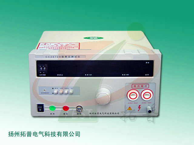 CC2672A 耐壓測試儀是通用型的高壓測試儀器,廣泛運用于電工器材、膠木電器、變壓器、電源線、電能表、電機、電源插頭座、電纜線等的耐壓測試,以及各種電子電氣產品的耐壓測試。隨著安全標準的建立,使耐壓測試儀成為各類無線電廠、電子產品等生產廠家耐壓測試儀器。