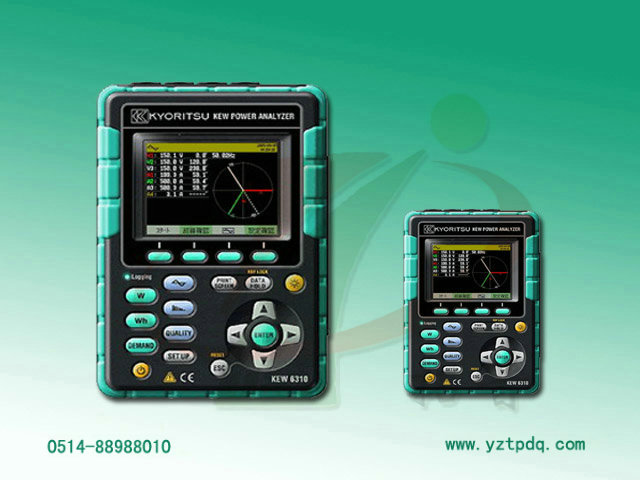 6310 電能質量分析儀設計符合安全規格IEC61010-1 CAT.III 600V。諧波測試可達63次。采用大型彩色LCD顯示屏。具有5種接線系統:單相2線(4回路)、單相3線、三相3線(2回路)、三相4線、單相3線+三相3線(SCOTT WIRING)。各種功率測量方法包括功率質量分析。6310電能質量分析儀具有2種供電方式:AC電源與電池電源(可使用充電電池)。觸摸墊可切換波形和矢量顯示。