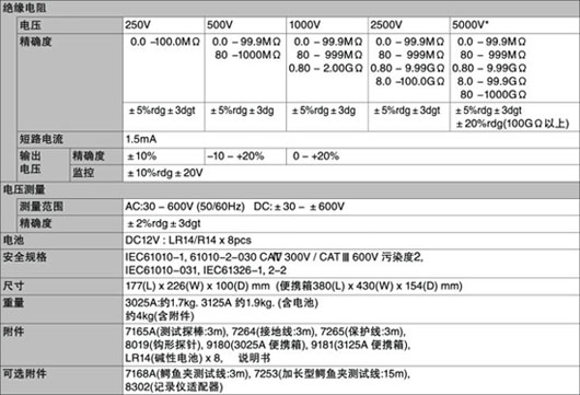 KEW3125A 數字式高壓絕緣電阻測試儀測試電壓范圍為250V/500V/1000V/2500V/5000V,絕緣電阻測試可達1TΩ,