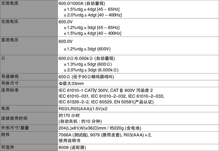 儀器簡介 KEW 2007R 鉗形電流表外形設計符合人體工程學,便于單手操作。采用0.1分辨率的大顯示屏,使讀取數據更容易。真有效值的讀數。60/1000A自動量程測試。超長電池壽命,設計符合安全規格。 技術指標